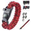 Survival bracelet is made of nylon bracelets with plastic buckle straps and whistles. It is made of 7 strands of parachute cord with a pull of 200 lbs. The total length of the single color bracelet detached parachute cord is about 3.5m-3.8m, and the double color bracelet detached parachute cord single is about 1.8m.