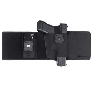 This elastic holster is constructed by breathable neoprene material which is lightweight and comfortable, you do not even feel it around waist or belly when running or jogging. The gun holster concealed, works great for modern day carry. You can wear it with anything; suit and tie, jeans, leggings, pajamas, gym shorts, etc, no more limits to your wardrobes.