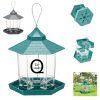 It’s made of PP, PS and stainless steel. Put in the bird food, cover the lid, and hang the bird feeder on the hook or tree. It could be filled with a variety of seeds to attract birds, such as black oil sunflower seeds, safflower seeds to attract red finches, tits, house finches, birds, blue birds, warblers, starlings and more! You can fold it up when you’re not using it, so it doesn’t take up space.