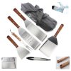 The 16PCS BBQ Grill Tools Set is made of high-quality stainless steel. As a set of heavy duty barbecue tools, it is extremely thick and difficult to bend by hand, don’t worry about rusting or cracking. It includes a barbecue spatula, a fork, a clip, four barbecue pins, eight small steel skewers, a silicone brush and a carrying bag.