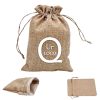 It’s made of natural jute with 370gsm. Drawstring design is applied to prevent items from falling and keep items clean. It’s suitable for storing coins, small jewelry, etc. Custom made designs are acceptable.