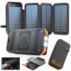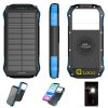 The solar power bank is made of Polymer, ABS, silicone, aluminum alloy and TPU. The charger not only can charging on the light but also supports electric charge. It has two USB output ports and two input ports in a good looking. You can use it as a flashlight. The power bank supports wireless charging for your mobile phone. There is a indicator shows the power. It is would secure your safety during outdoor, travels, office, camping, etc.
