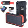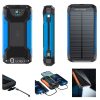 The solar power bank is made of Polymer and alloy. The charger not only can charging on the light but also supports electric charge. It has two USB output ports and one input port in a good looking. There is a indicator shows the power. The mountaineering buckle design, easy to carry. It is more specific that had a compass which would secure your safety during outdoor, travels, office, camping, etc.