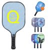 This pickleball paddle set includes 2 paddles and 6 pickleballs, 3pcs indoor ball with 26 holes and 3pcs outdoor ball with 40 holes. The paddle is made of basswood and covered by PP on the surfaces. It is very strong and with light weight and good rebound effect. The handle is made by PU with bumpy feeling design to catch it more tight when playing. The pickleball is made of hard PP with 2.95 inch each.