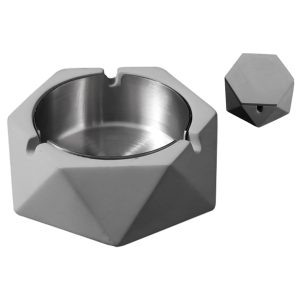 This cement ashtray is made of cement and stainless steel. It has 3 slots for easy placement of cigarettes. Stainless steel liner is removable and easy to clean. It comes with a lid to effectively block second-hand smoke. There is a non-slip pad at the bottom to prevent scratching the table top.