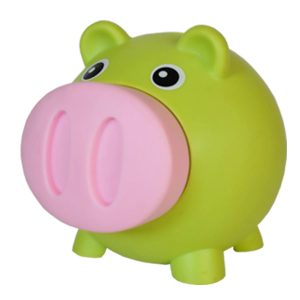 It’s made of Vinyl, which is good touch feeling and shatter-resistant. There is a removable nose for coin retrieval. When press nose, it will generate sound, which is very cute. Save your pennies for a rainy day with our best selling 4″ piggy bank. Our piggy banks help encourage savings in young children and feature a twist plug to retrieve the money.