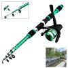 Crafted from high-quality glass fiber, this fishing rod boasts a total length of 70.86 inches and a convenient fold length of 16.54 inches. This reel combo kit comes complete with a tackle box filled with a variety of fishing lures and accessories tailored for various fishing scenarios. Ideal for use in rivers, lakes, and seas, this versatile rod is portable and perfect for anglers of all ages, including children.
