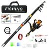 Crafted from high-quality carbon fiber, this fishing rod boasts a full length of 82.68 inches and a convenient fold length of 16.93 inches. With 7 easily expandable sections, this rod is perfect for anglers on the go. The reel combo kit comes complete with a tackle box filled with a variety of fishing lures and accessories tailored to various fishing scenarios. To top it off, a sleek black travel carry bag is included for easy transportation.
