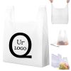 The plastic vest bag is made of PBAT and PLA. Thickness is double-sided 5C. Lightweight design with handle for easy portability. Customers’ logos can be printed on bags. Ideal for use in takeout shopping, restaurants, retail, grocery shopping, and checkout counters.